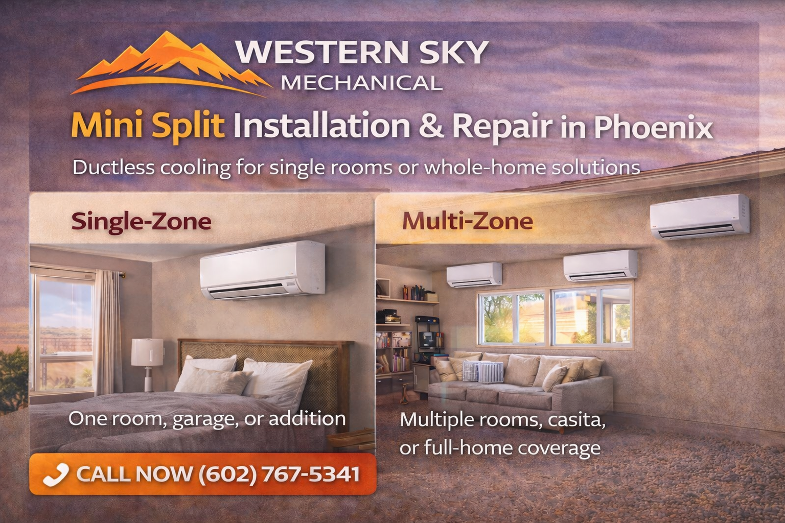 Call (602) 767-5341 for immediate Mini Split repair in Phoenix. Real people. Same-day service. Honest pricing. Western Sky Mechanical.